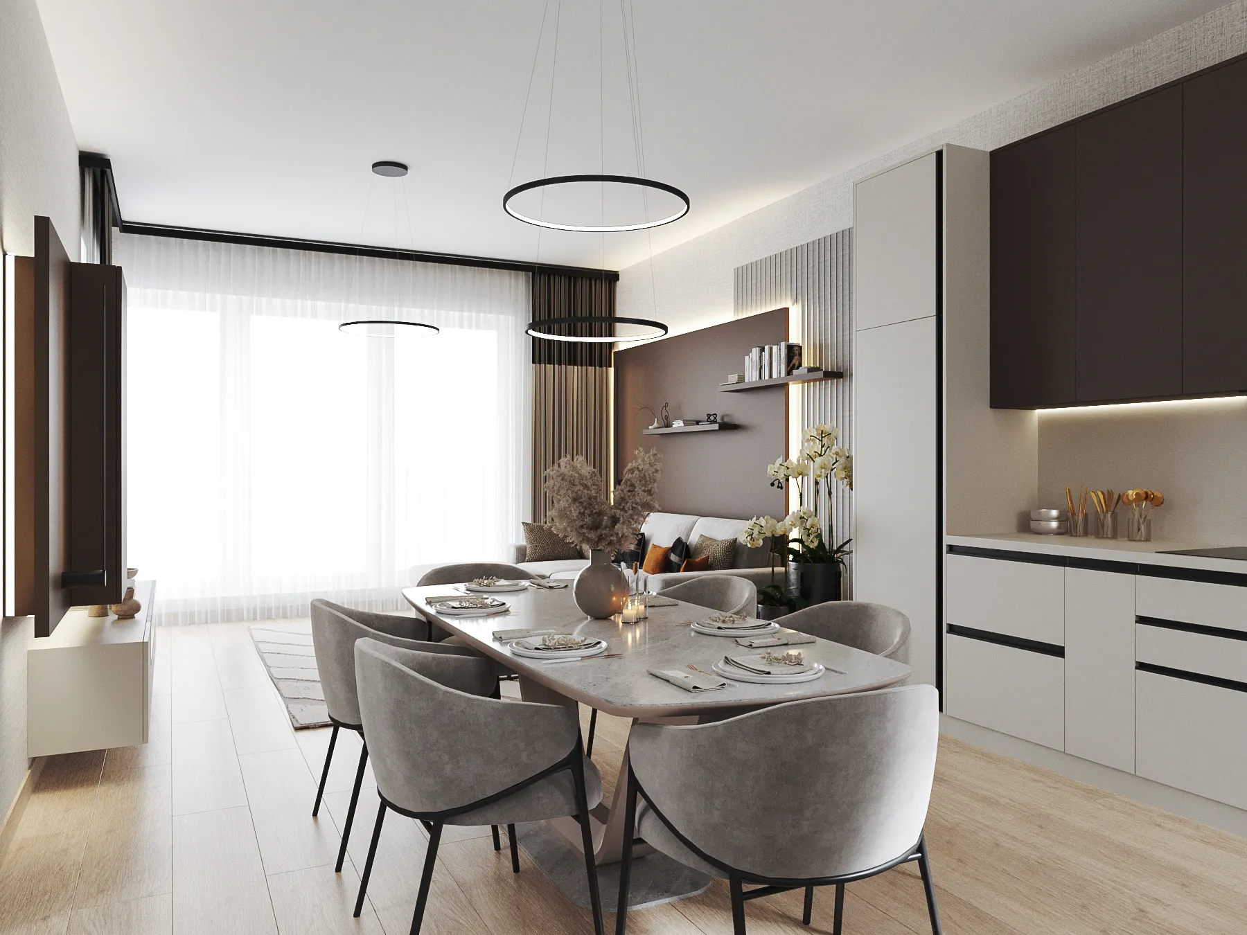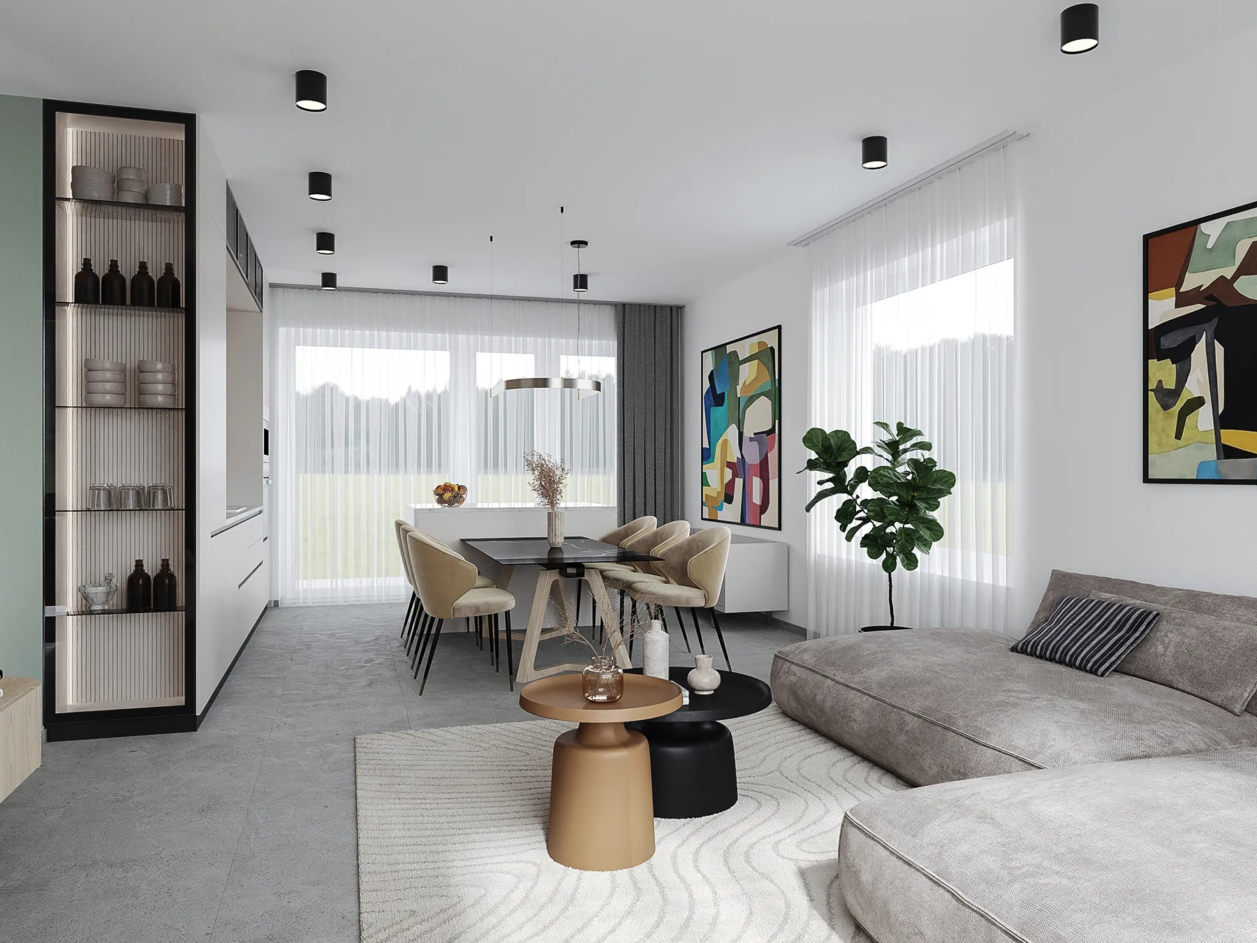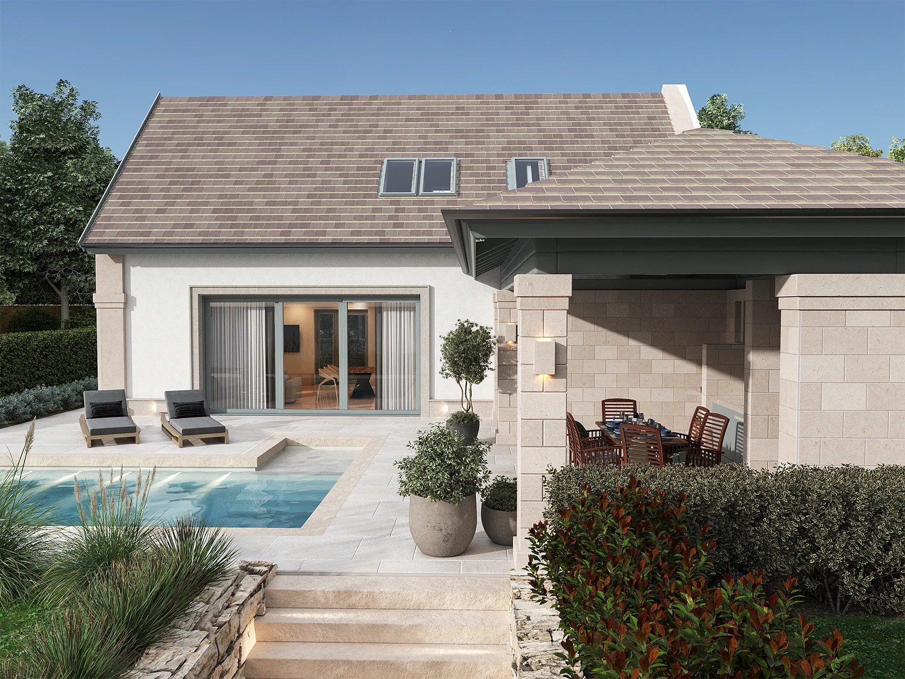FOTÓREALISZTIKUS ÁLLÓKÉPEK KÜLSŐ ÉS BELSŐ TEREKRŐL, AMELYEK MEGRAGADJÁK A TERV LÉNYEGÉT ÉS HANGULATÁT