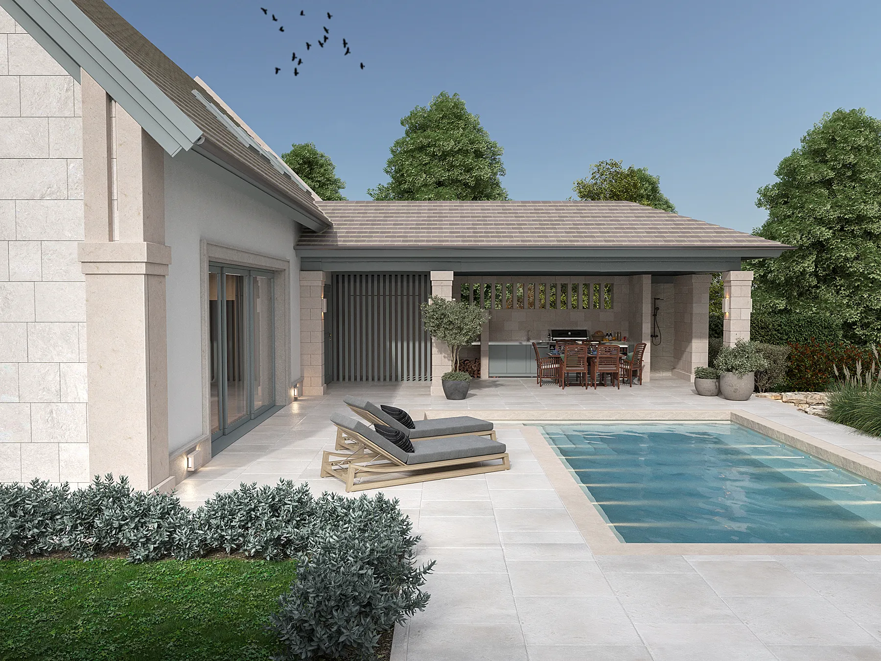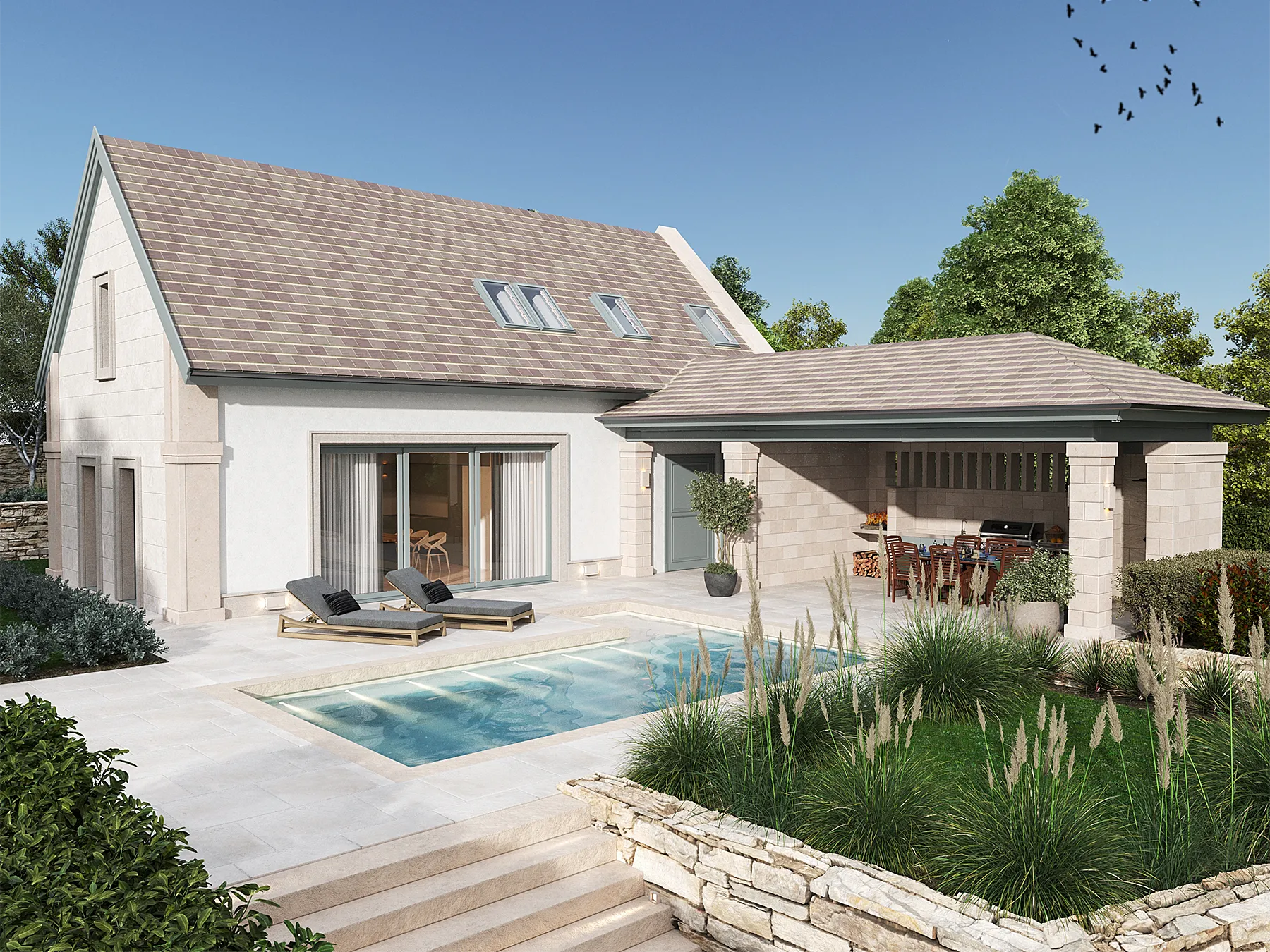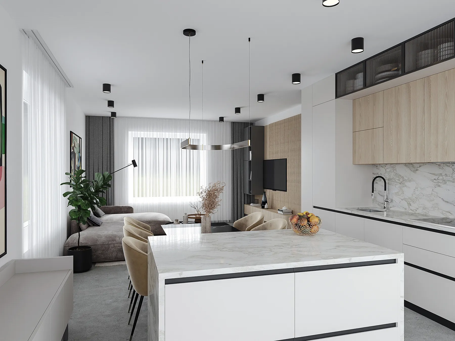 FOTÓREALISZTIKUS ÁLLÓKÉPEK KÜLSŐ ÉS BELSŐ TEREKRŐL, AMELYEK MEGRAGADJÁK A TERV LÉNYEGÉT ÉS HANGULATÁT